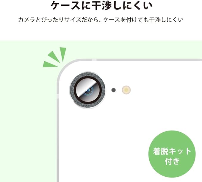 カメラレンズ周りを煌びやかに魅せるiPhone16e 用 カメラレンズプロテクター ラメシルバー