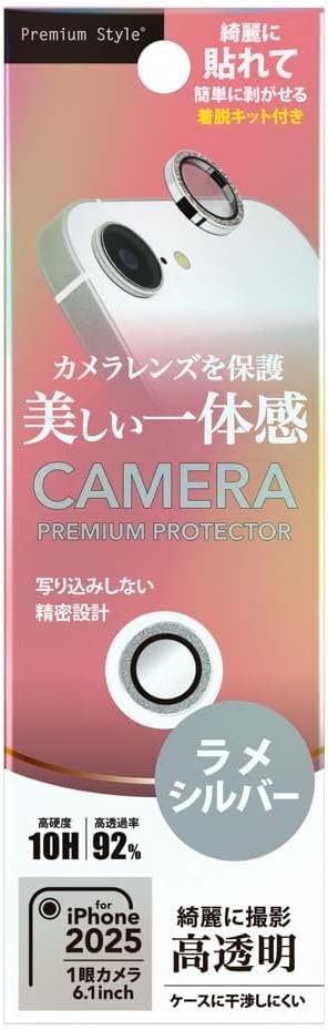 iPhone16e 用 カメラレンズプロテクター カメラレンズ レンズ保護 レンズカバー ラメシルバー PG-25KCLG07SV Premium Style