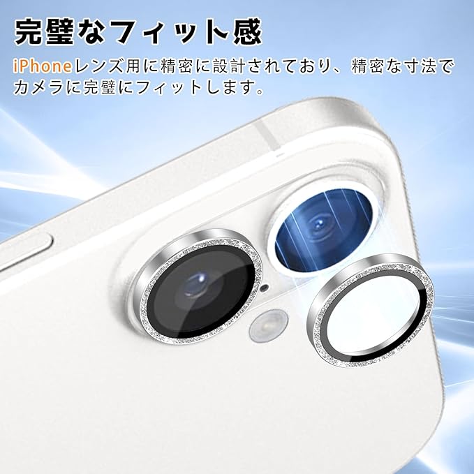 レンズカバー iPhone 17 対応 カメラフィルム カメラ保護 キラキラ カメラカバー キズ防止 露出オーバー防止 簡単貼り付け 傷防止 9H硬度 二重保護 全面保護 衝撃吸収 防塵 落下防止 防水 高透過率 独立型レンズプロテクター iPhone17用 - シルバー