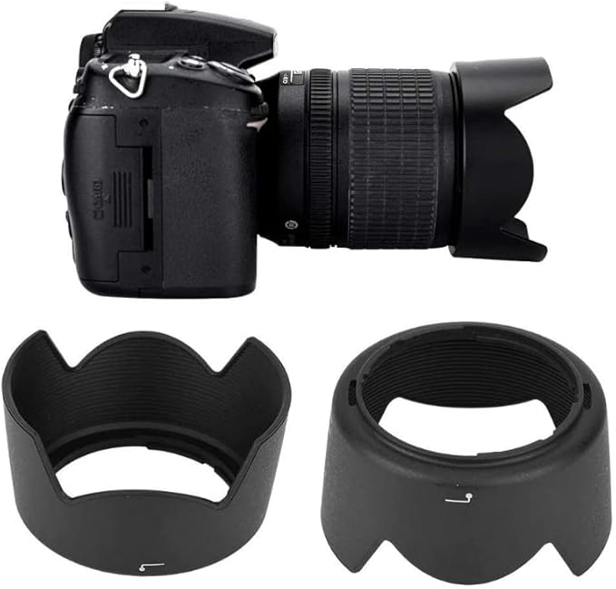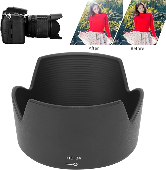 HB‑34リバーシブルカメラレンズフードサンシェードプロテクター、Nikon AF‑S DX 55‑200mm F / 4‑5.6G ED 85mm F / 3.5Gレンズ用、ブラック