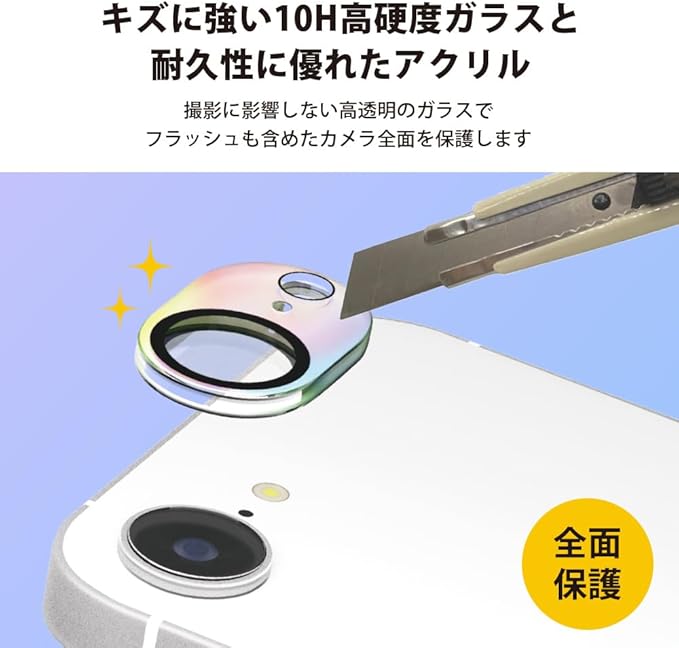 カメラ周りを鮮やかに彩るオーロラデザインのiPhone16e 用 カメラフルプロテクター