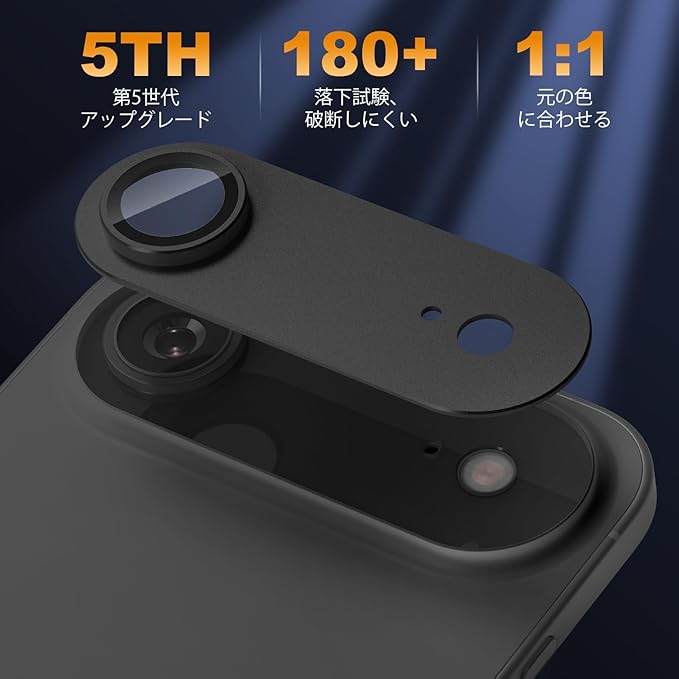 1. 【3代目進化版・アルミ合金一体型全面防御】 最高硬度9H強化ガラスとアルミ合金フレームを一体化構造で融合。従来品を超える強固さで、iPhone 17 Air 用のレンズモジュール全体(一眼レンズ+四角い台座)をすっぽり覆い、落下や鍵・カッターなどの鋭利な物からの衝撃・キズからも完全保護。本体同色のブラック縁取りが美しく融合します。iphone17air機種と同じ色で本体のレンズ部分と完全に融合していく、違和感なく、一体感と高級感が溢れています。