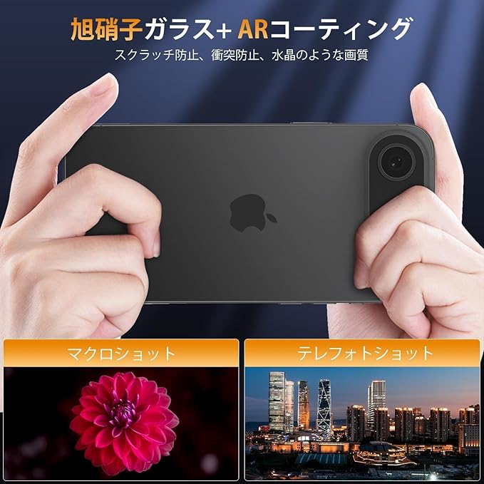 【露出オーバー防止 & AR99.99%超高透過】 カメラフラッシュ使用時の乱反射を大幅に低減する黒縁デザインを採用し、写真が白っぽくなる「露出オーバー」現象を効果的に防止。さらに表面の光学ARコーティング技術により、驚異の光透過率99.99% を実現。元のレンズ性能を損なわず、クリアで自然な発色の写真・動画撮影を保証します。