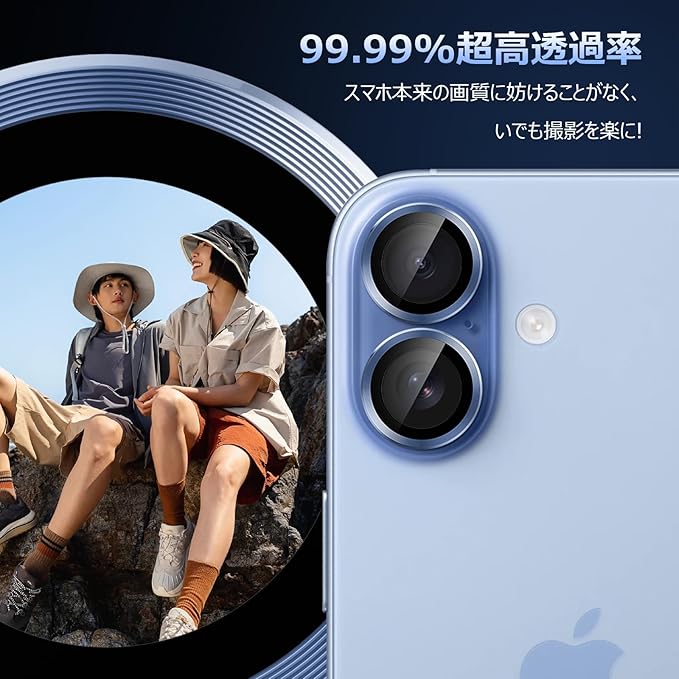 【超高透過率・0.4mm極薄型】本製品は露出オーバー防止のために、カメラ覆う部分に黒い縁取りをした設計を採用。さらに、強化ガラスに光学コーディング(AR)技術を採用し、光の透過率は99%に達し、装着していない状態のように、繊細な写真の撮影が可能です。わずか0.4mmの極薄型で、違和感もなく本体の設計も損なわないです。レンズを保護しながら、i-P-hone本来の高画質を楽しむことができます。