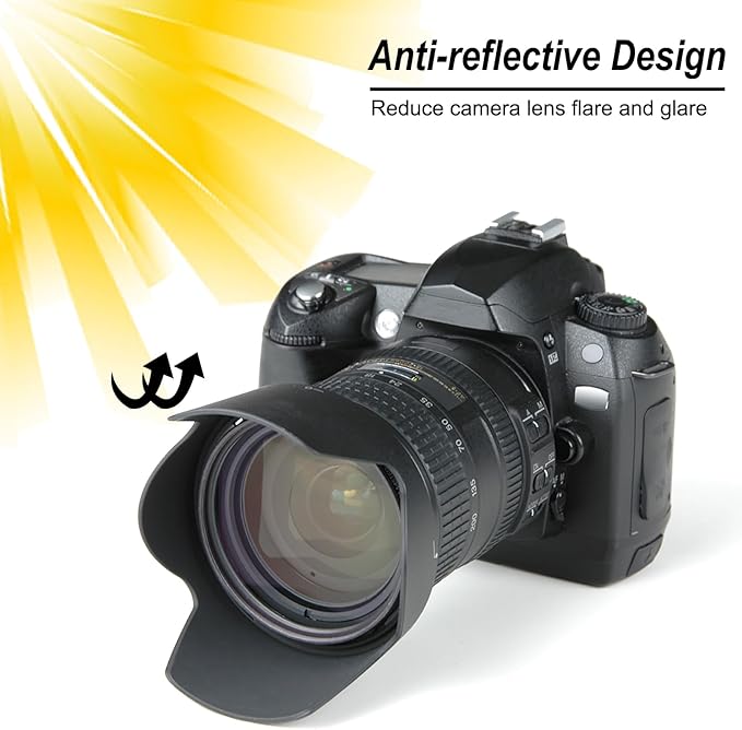 取扱説明書:簡単に取り付けることができます。使用時には、レンズフードの上部と下部の位置に2つの高いフラップを合わせ、ナットを時計回りに回してロックします。これにより、眩しさや不要な反射を軽減し、写真がクリアになることを保証します。独特なデザインはレンズを損傷からも保護し、寿命を延ばします。