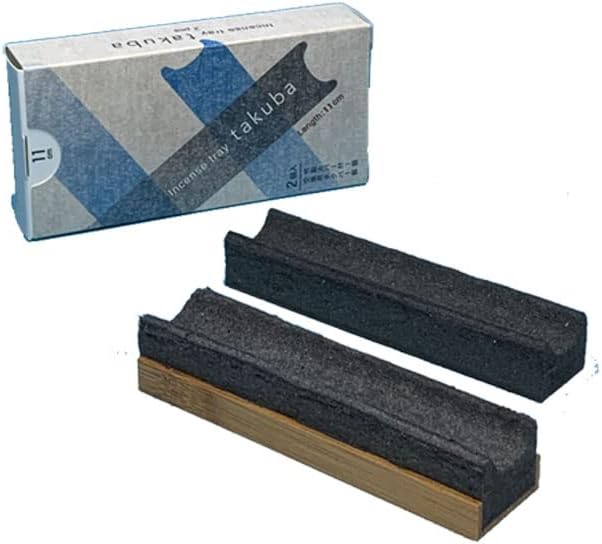 takuba(タクバ)は香立を使わないシンプルなインセンストレイです。タクバ専用のセラミックフェルトを独自に開発、使用後のヤニの匂いを抑える事ができました。お線香を寝かせてたきますので灰が散らず最後まできれいに燃焼します。 タクバ本体2個に竹製の底台としてのカバーが付属しています。11㎝サイズは、10cm以下のお線香まで使用できます。お香はついておりません。 お手入れ方法:タクバに残った灰はその都度捨ててください。匂いや汚れが気になりだしたら竹製のカバーからセラミックフェルトを取りはずし新しいものに交換してください。 ※崩れやすい材質のため取り扱いにはご注意ください。