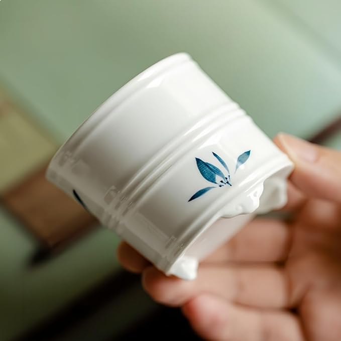 デザイン: 白い陶磁器製の線香立て、手描きの胡蝶蘭装飾が特徴的で、美しい芸術作品のような外観