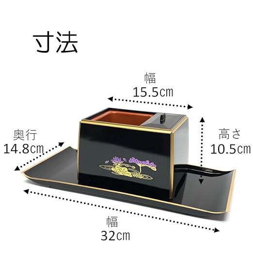 香炉 幅15.5 奥行11 高さ10cm 焼香盆 幅32 奥行14.8 高さ2cm