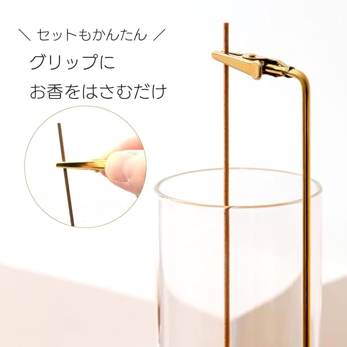 お香をセットする際は線香が折れないよう、クリップでそっと優しく挟み込ませてください。設置が完了しましたら、線香が受け皿の中心に来るように、クリップの向きを調整頂き、ご使用ください。お部屋やお仏壇を灰で汚しにくく安心してお使いいただけます。