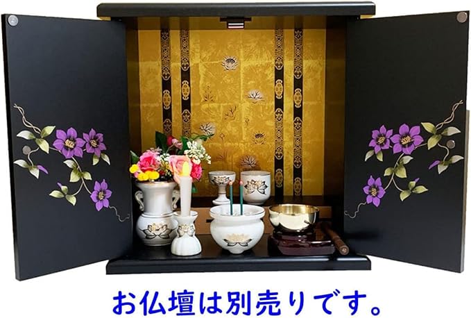 LEDロウソクと線香は10分で自動的に消灯します。仏花(造花)と透明度の高い3A天然水晶付き。水晶はお好みの量を香炉に入れてお使いください