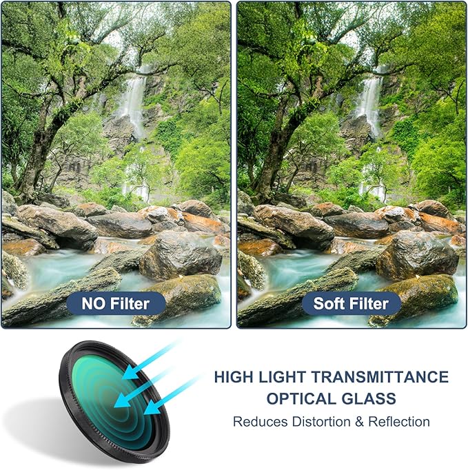 幅広い用途 - ソフトディフュージョンフィルターは肌をより滑らかで柔らかく見せ 写真 雰囲気効果を高め 風景をより美しく自然に見せることができます。ポートレート写真 ビデオ撮影 ブログ動画に適しています。