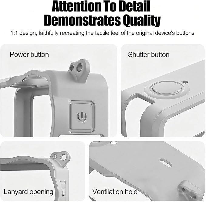 フルアクセス操作&ハンズフリー利便性:1:1精密カットアウトにより全ボタン・ポートを完全に操作可能。専用通気孔と一体型ストラップホールにより、リストストラップや紛失防止ストラップの装着が可能。冒険中のハンズフリー撮影を実現します。
