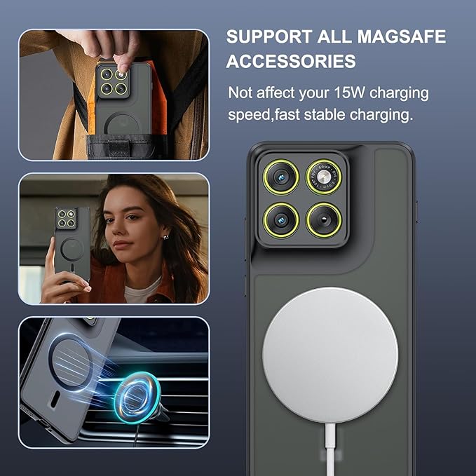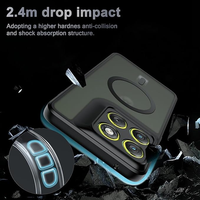Moto Edge 70/x70 air ケース MagSafe対応, 半透明耐衝撃 マット感ケース 画面保護 レンズ保護 滑り止め 指紋防止 全面保護 Moto Edge 70 用カバー ブラック