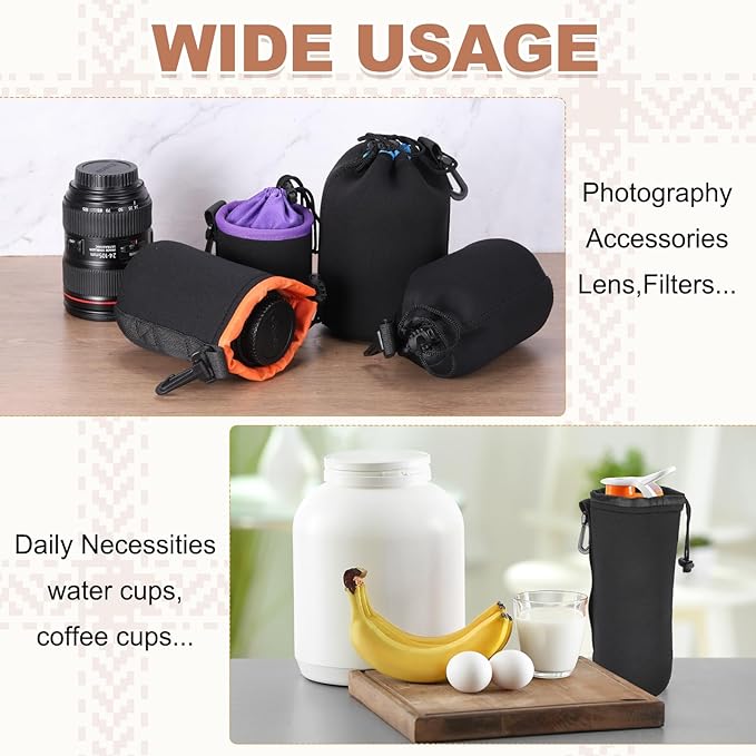3. 用途:ネオプレンレンズポーチバッグは、カメラレンズを偶発的な傷、衝撃、ほこりから保護します。様々なブ ランドのほとんどのレンズに適しており、水カップやコーヒーカップなどの保管にも使用できます。
