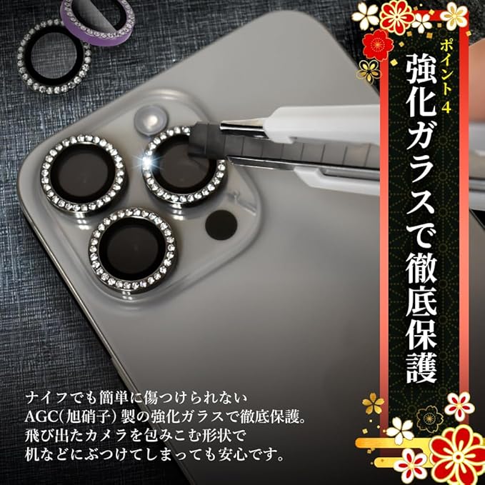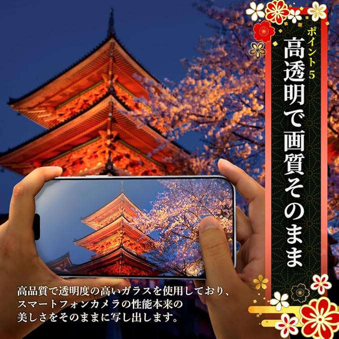 【叶kanaeがお客様のスマホカメラ部分を守ります。】耐傷性に優れた強度で携帯のカメラを傷つけず快適に使用いただける高品質ガラスフィルムです。