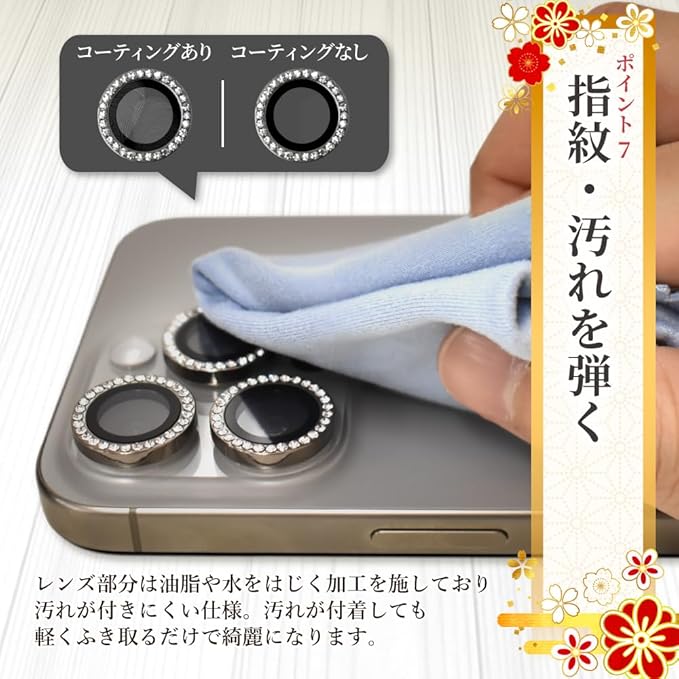 【高品質なカメラレンズフィルム】簡単装着 貼り付けも簡単!!本体装着後、透明度が高いので画質に影響がなく撮影可能。硝子表面はプラズマ溶射処理による、フッ素コーティングを施しています。(フラッシュを使用されますと、写真の画質が落ちる場合がございます。)