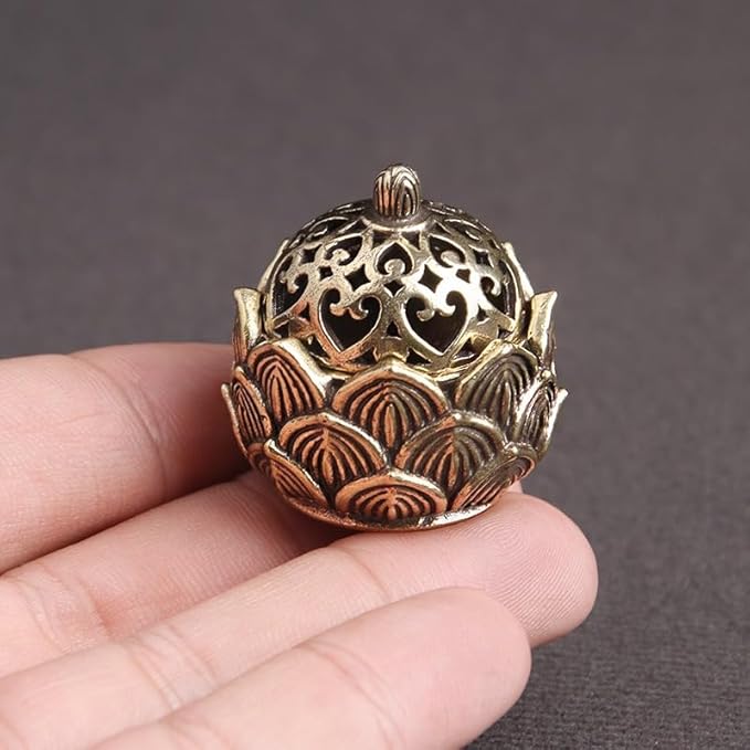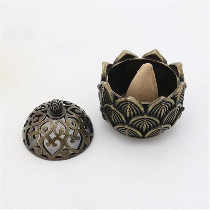 蓮華 連弁香炉 ミニ 香炉 ハスの花 置物 金属製 真鍮 三角香 コーンタイプ 小物入れにも
