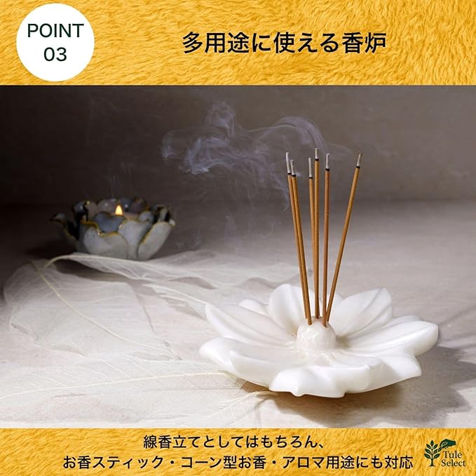 【多用途に使える香炉】 線香立てとしてはもちろん、スティックタイプやコーン型のお香、さらにはアロマ用のインセンスにも対応可能。 シーンや気分に合わせて使い分けられる、便利でマルチな香炉です。