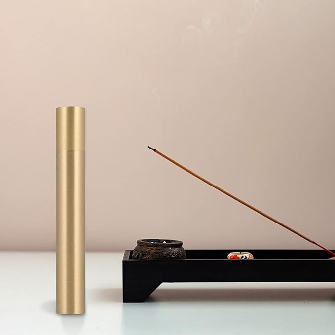 銅製で香りを守る設計:耐久性のある銅素材を使用し、線香やお香の香りを長時間保護します。11.5cmのコンパクトなチューブは携帯に便利で、仏壇や屋外での使用に適しています。
