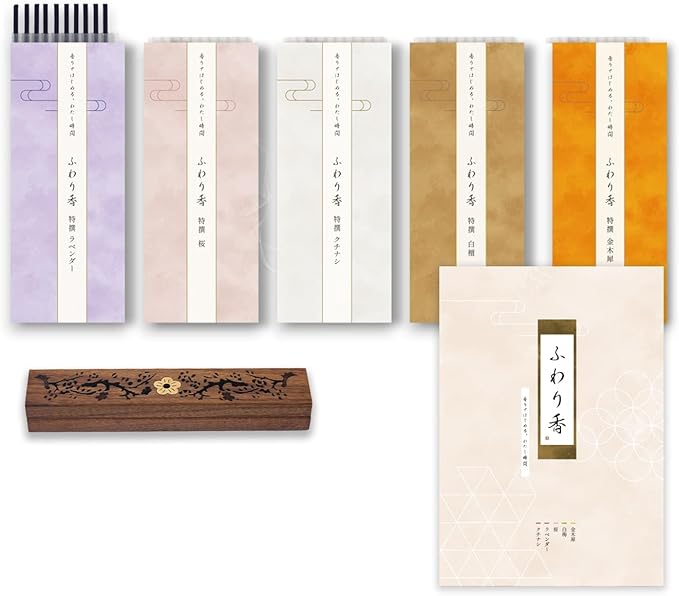 金木犀・白檀・桜 5種セット 線香 少煙 癒し時間に 香炉付き ふわり香 日本製 ギフト