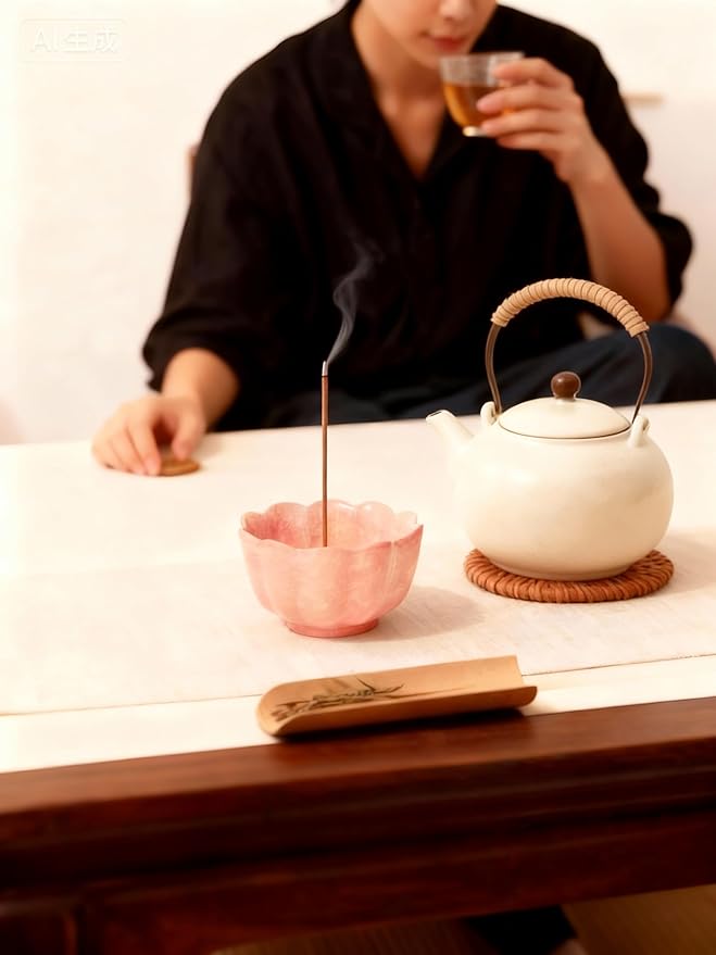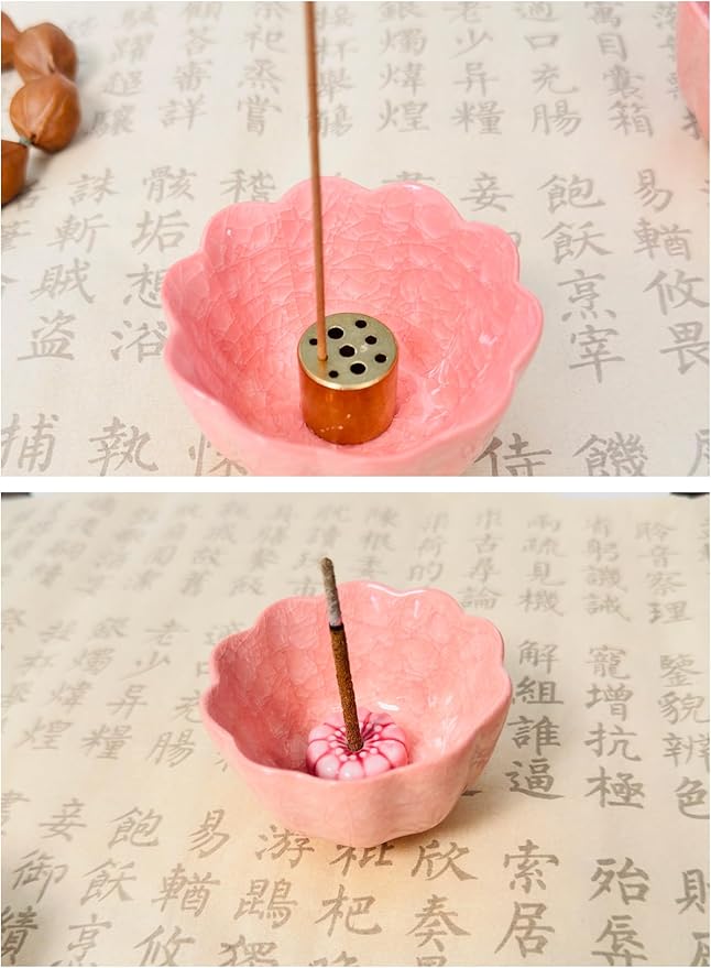優雅な陶器製のお香立てで、瞑想やヨガ、茶道、香道の時間をより特別なものに。直径7cm、高さ4.2cmのコンパクトなサイズで、ミニ仏壇や書斎にぴったりフィット。可愛らしいピンク色の器は、シンプルながら洗練された美しさを演出します。香立ての上部には穴が開いており、お香をしっかりと固定。安定感のある設計で、安全にお使いいただけます。セットには香立て本体、蓋、お香を立てるための真鍮製のホルダーが含まれています。和モダンなデザインは、現代のインテリアにも自然に溶け合い、落ち着いた雰囲気を演出。大切な方への贈り物としても最適です。手作りの温かみのある陶器は、長く愛用できる上質な仏具として、日々の瞑想や供養の時間を豊かにします。
