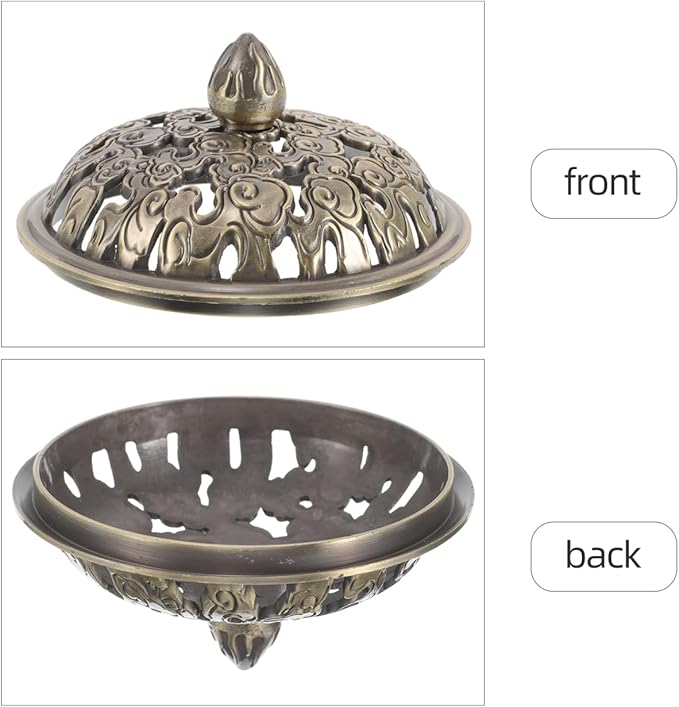 LEDMOMO 香炉 蓋 カバー 銅製 透かし彫り 直径8cm アンティーク 火屋 香炉の蓋 交換用 飛散防止 防塵 仏具 茶道 お香 アロマ インテリア (アンティークブロンズ)