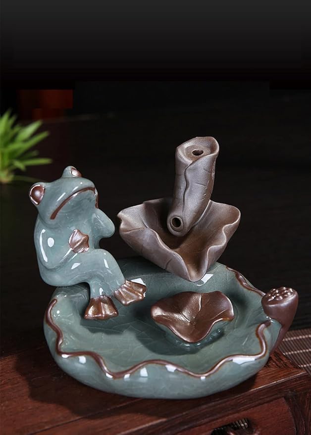 香炉 陶器 かわいい カエル 蛙 癒し香炉 陶芸 倒流香 仏壇用香炉 お試しお香付き セラミック お香立て 置物 開運 風水 逆流香 流川香 還流香 茶道用品 和風 書斎 リラックス インテリア