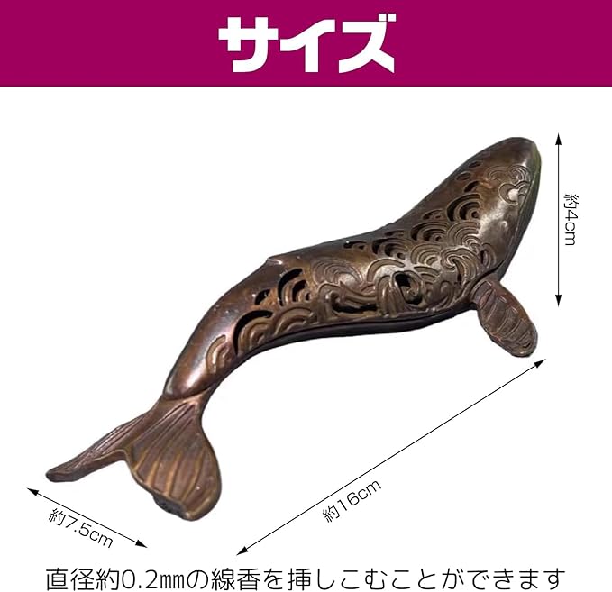クジラのお香立て:お香スタンドとしてだけでなく、線香立てや香皿としても使用可能です。瞑想やヨガ、ティラピスの時間にリラックス効果を高めます。風水魚のモチーフが、空間に良いエネルギーをもたらします。