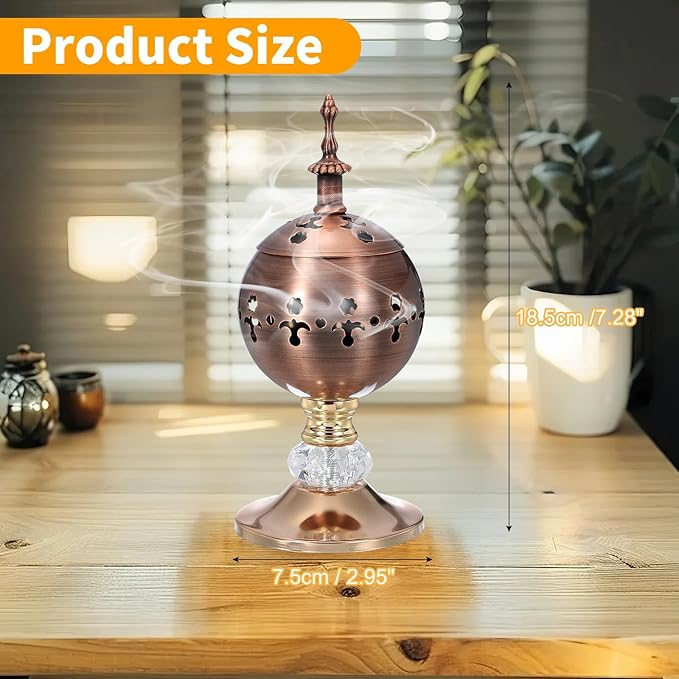 デザイン:フランキンセンス樹脂用香炉の中空デザイン、精巧な仕上げ、優美な模様、スタイリッシュで美しい形状で置き場所に最適。ベースは安定して倒れにくい
