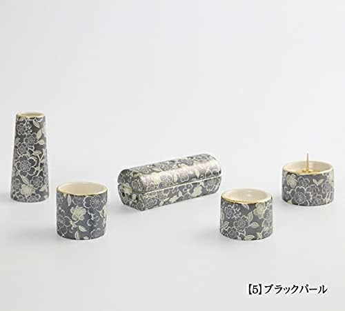 セット内容 <アイリス 筒型香炉> 〈仏器〉ご飯をお供えしていただきます。〈茶湯器〉 お水(またはお茶)をお供えしていただきます。〈花立て〉お花をお供えしていただく仏具です。〈前香炉〉 お線香を焚いていただく仏具です。〈火立て〉ローソクを立てていただく仏具です。