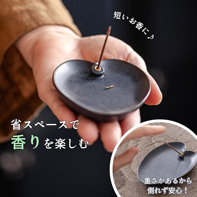 [CROWNCAT] お香立て 香炉 陶器 【インテリアに映えるデザイン香立て&おしゃれなカラー 安定感のある陶器製&短いお香用コンパクトサイズ&お線香が斜めに立って灰がこぼれにくい♪】