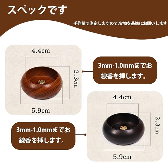 【超小さくて可愛い線香立てです】直径が約6cmと小さく、木製なので置く場所を選ばず使うことができています。4つの大きさの違う穴あり:様々なサイズの線香でも使えます。気軽にお香が楽しめる作りの良い小さなお香立てです。