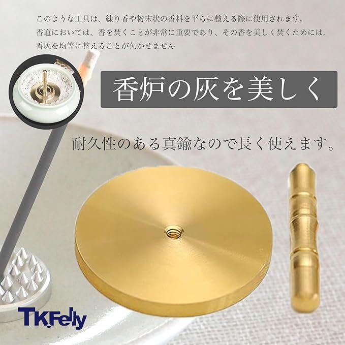 灰押さえ 灰ならし 真鍮 香道具 灰 プレス お香 線香 香炉 ツール パウダープレス 直径 5cm