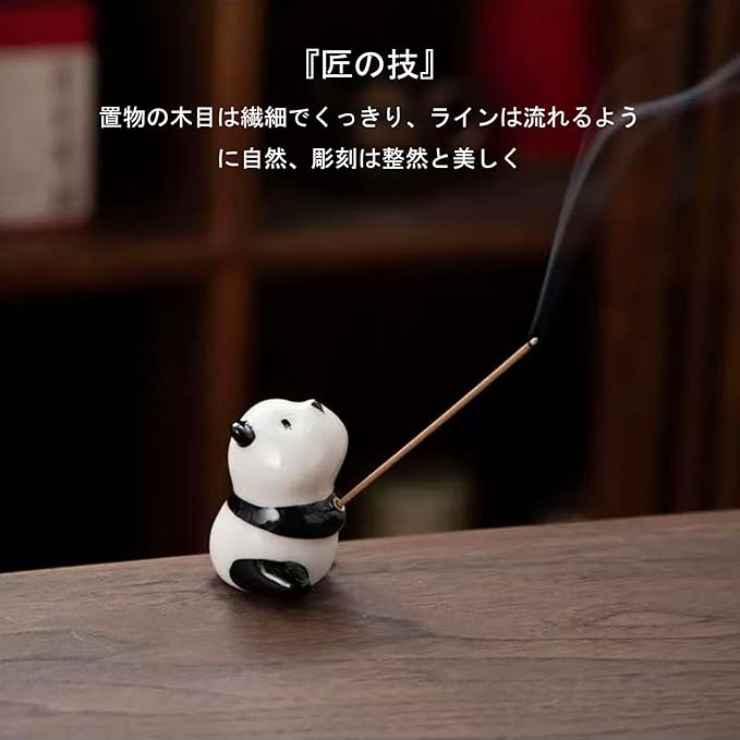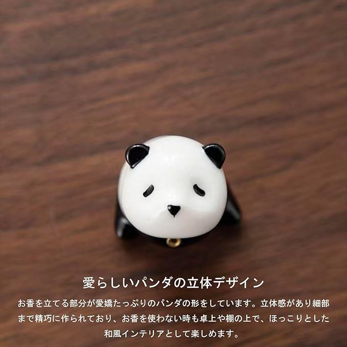 【愛らしいパンダの立体デザイン】 お香を立てる部分が愛嬌たっぷりのパンダの形をしています。立体感があり細部まで精巧に作られており、お香を使わない時も卓上や棚の上で、ほっこりとした和風インテリアとして楽しめます。