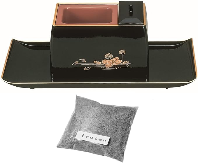 5寸香炉(黒色フチ金蓮) 1、焼香盆 (黒色フチ金) 1、irotan特選香炉灰 1◆日本製 ※御香、香炭は付属していません