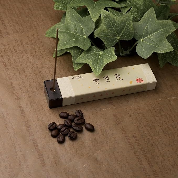 厳選されたコーヒー豆粉を使用したお香。点火してしばらくするとマイルドな暖かいコーヒーの香りが広がり、カフェの雰囲気を作り出します。