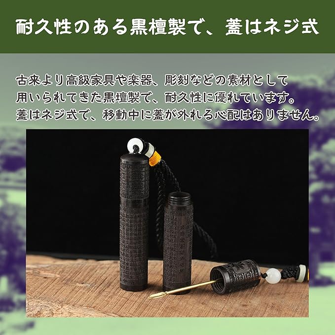 [HYmish]塗香入れ 薬さじ付き 直径1.8cm 塗香 薬さじ付き コンパクトサイズ 参拝 黒檀 ストラップ付き 荷塘月色