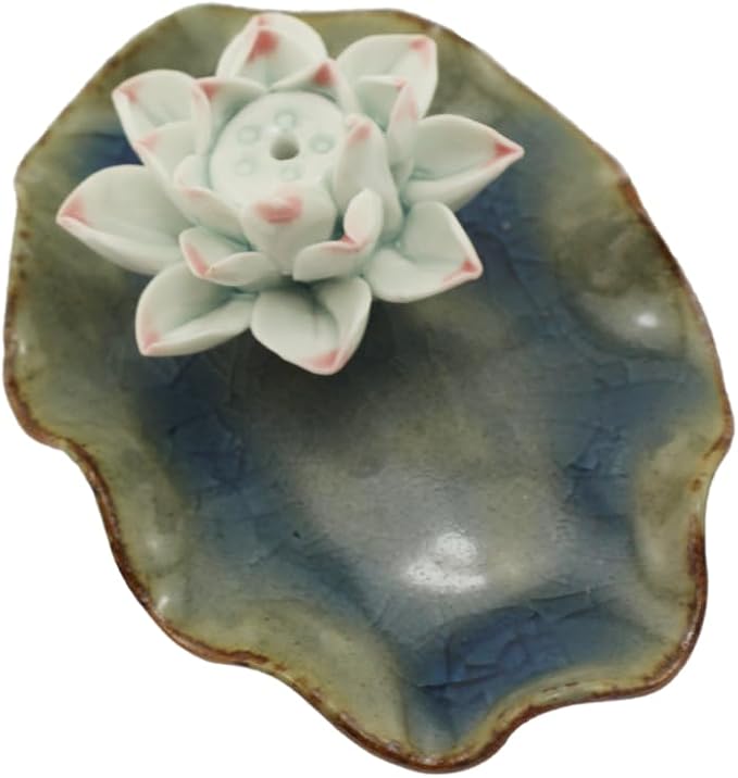 speed mao おしゃれ 蓮の葉 蓮の花 香炉立て お線香 ろうそく ホルダー 癒し リラクゼーション などに 青色