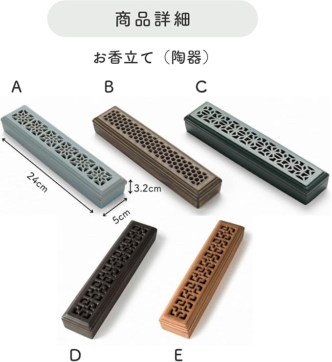 実用性と美しさを兼ね備えています。和のテイストを活かしたデザインで、様々なインテリアに調和します。日々の癒しの時間や特別な機会に、このお香立てで心地よい香りをお楽しみください。ギフトとしてもおすすめの一品です。