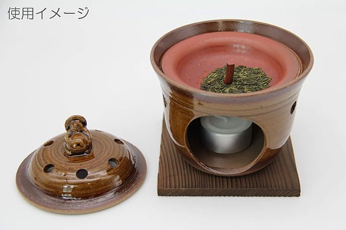 佐治陶器,萬古焼 茶香炉 10.2cm (キャンドル・敷台付) 狸 アメ釉 日本製 011-10, ブラウン