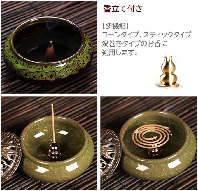 【様々なお香に対応】お香立てが付属しているので、コーンタイプだけでなく、スティックタイプ、コイルタイプ(直径7㎝まで)など、あらゆるお香を手軽に楽しむことができます。
