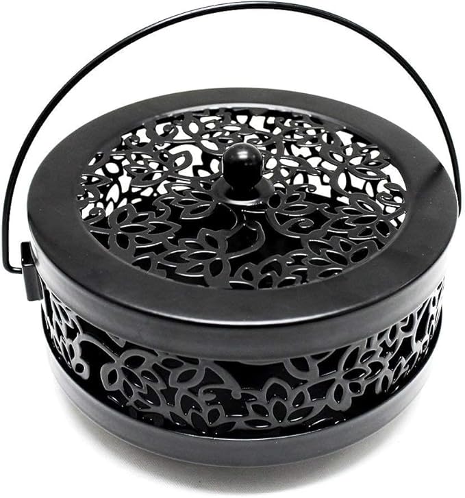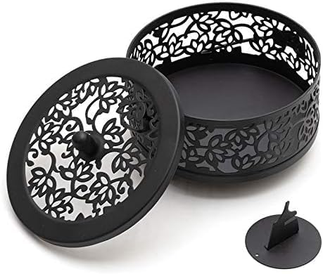 「材質」:スチールで作られており、 重厚 感があり、耐久性もよく、持ち運び用の取っ手も使いやすく。落ち着いたブラック色でお部屋の印象を崩さずに蚊取り線香を使用することができます。美しい蓮の花模様で風通しがよい。