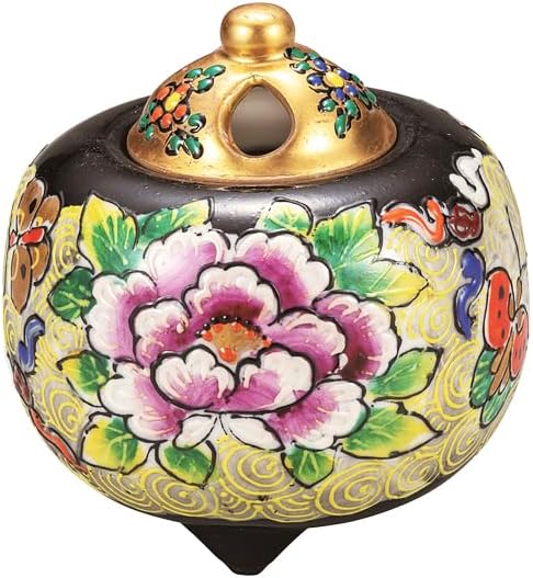 ナカマル『九谷焼』3.5号香炉・黒盛花と蝶 K9-1476