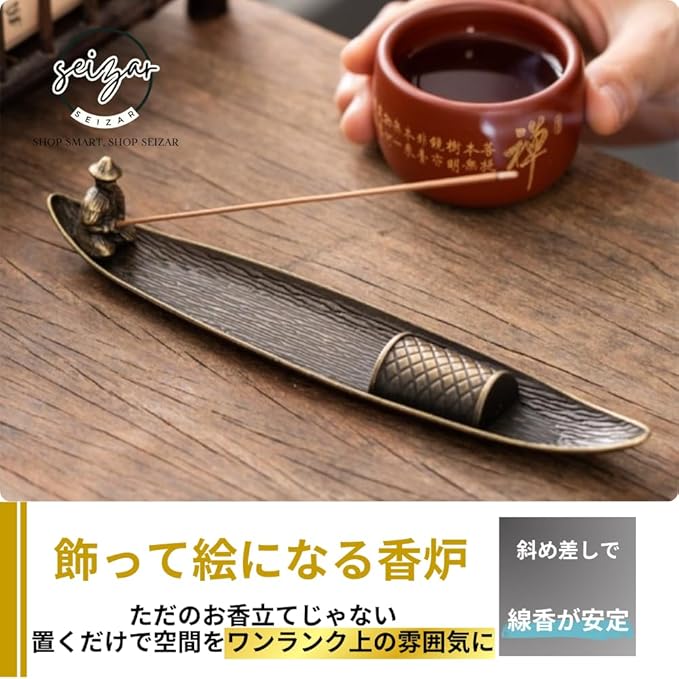 seizar お香立て おこうたて おしゃれ 香立て 線香立て 釣り人 船 御洒落 灰がこぼれない 可愛い インテリア雑貨 (漁師釣り)