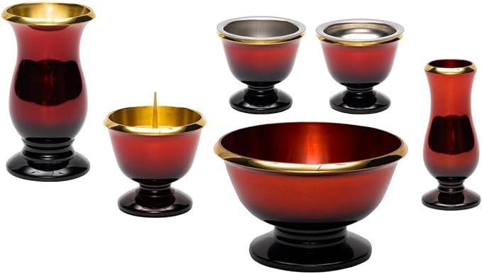 湯茶器 1・仏器 1・花立 1・灯立 1・香炉 1・線香差 1の6点セットでお届けします。