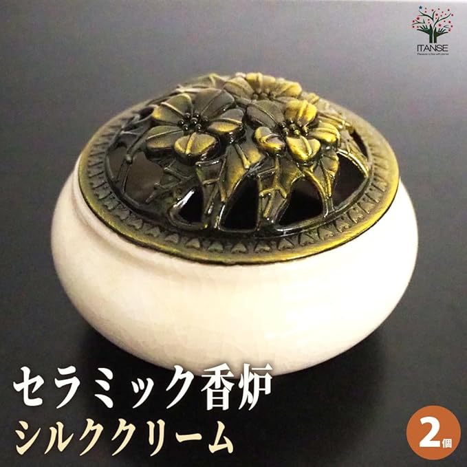 ITANSE セラミック香炉・シルククリーム 2個セット【お香立て】気品漂う雰囲気が楽しめます。