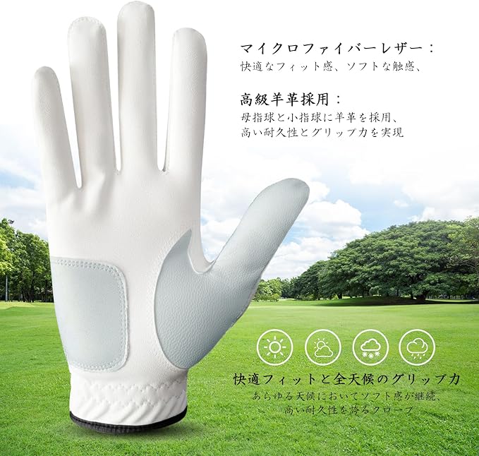 P2.強力グリップ:しっとりとした高級合成皮革と羊革で、強力なグリップ力を発揮。伸縮性のある素材により、幅広い動きが可能で、長時間のラウンド中の疲れを軽減します。