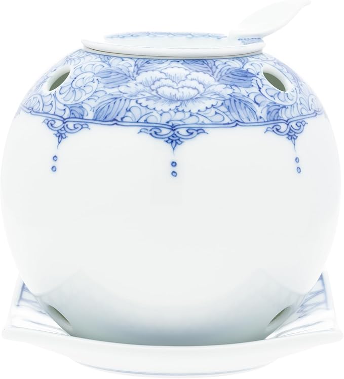 茶香炉 間取牡丹唐草 世知原茶10g入り 直径10 高さ11cm