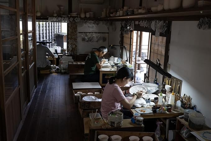 絵柄 : 幕府や藩主への献上品として描かれてきた献上唐子絵。青一色で描かれる絵柄は得意とする繊細な染付技術の根源であり、線一本一本に込められた意味や、立体感を表現する高度な技術を現代にも受け継いでいる。