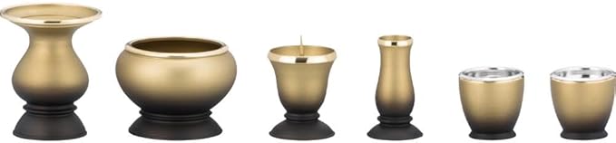 香炉・火立・花立の基本となる3つのお仏具に仏飯器・湯呑・線香差を加えた仏具6点セットです。